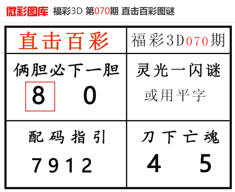 • 26074期:福彩3D【直击百彩】微彩图谜 上期胆码红4、配码红0