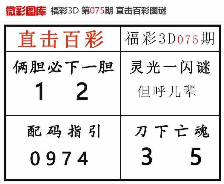 • 26076期:福彩3D【直击百彩】微彩图谜 上期胆码红1、杀码红