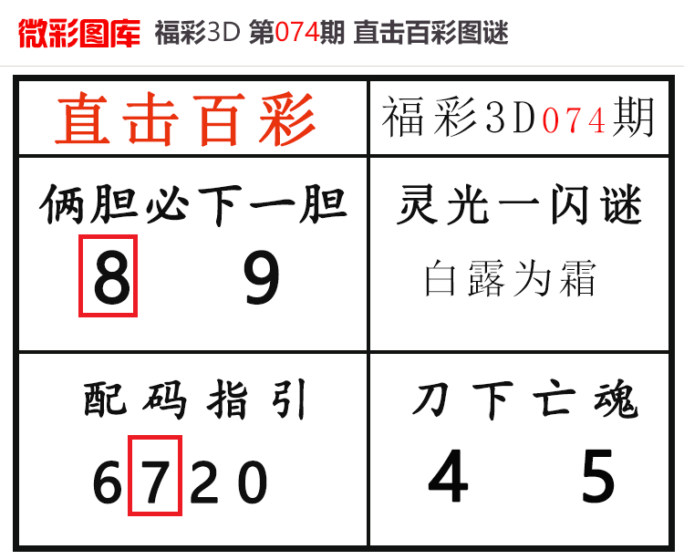 • 26075期:福彩3D【直击百彩】微彩图谜 上期配码红7、胆码红8