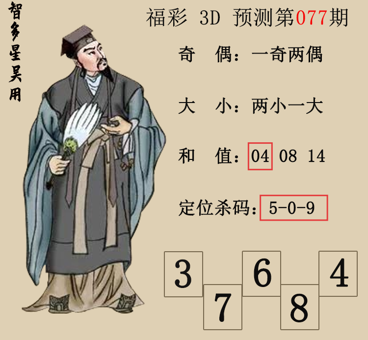 • 26078期:福彩3D【智多星吴用】预测图 上期和值红、杀码红