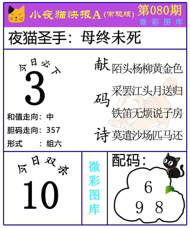 • 26080期:福彩3D【小野猫快报】精选版图库 上期双杀红