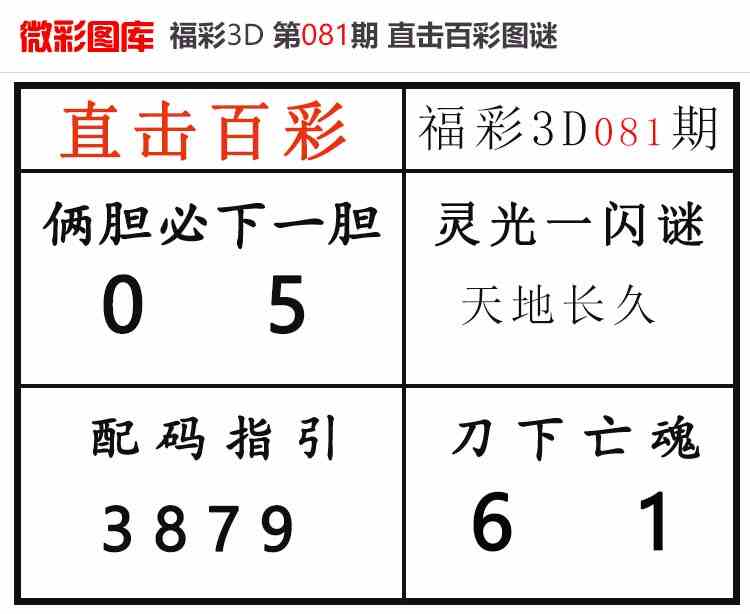 • 26081期:福彩3D【三星图】字谜推荐 上期胆码红08