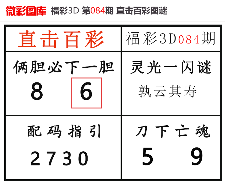 • 26084期:福彩3D【直击百彩】微彩图谜 上期胆码红6、杀码红