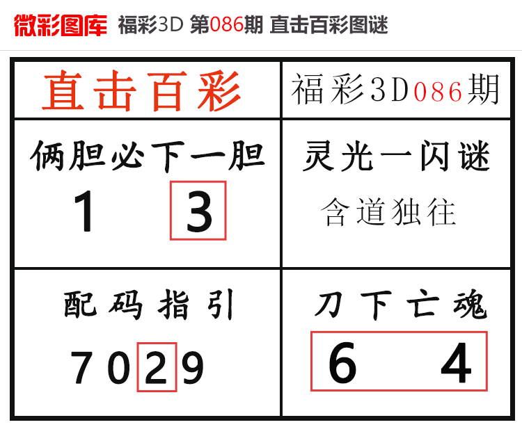 • 26088期:福彩3D【直击百彩】微彩图谜 上期胆码红9、杀码红