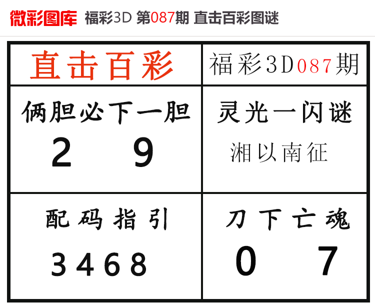 • 26087期:福彩3D【直击百彩】微彩图谜 上期配码红2、杀码红