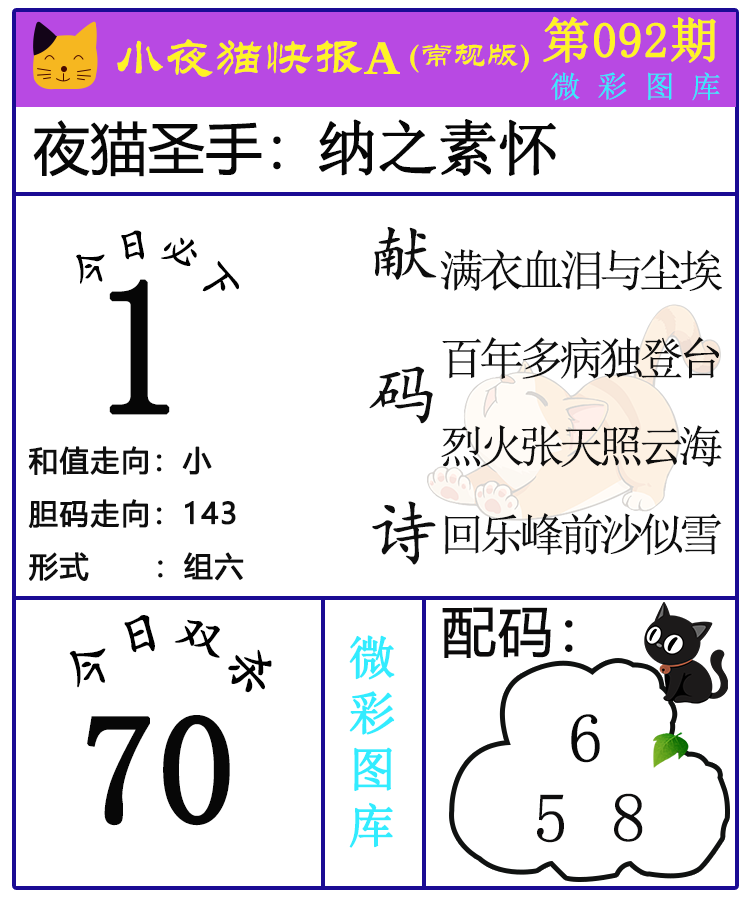 • 26092期:福彩3D【小野猫快报】精选版图库 上期胆码走向红7