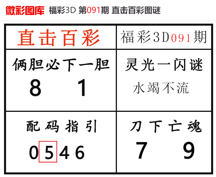• 26091期:福彩3D【直击百彩】微彩图谜