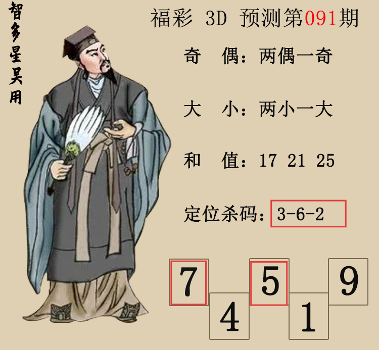 • 26091期:福彩3D【智多星吴用】图谜 上期胆码红1、奇偶红