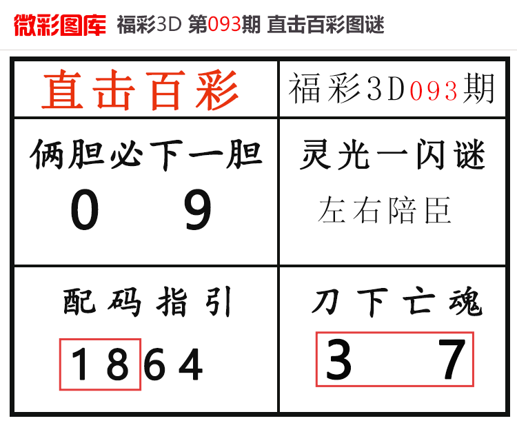 • 26093期:福彩3D【智多星吴用】图谜 上期胆码红8、杀码红