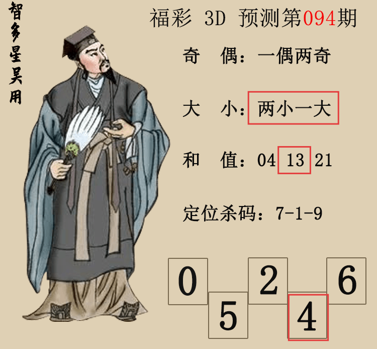 • 26095期:福彩3D【智多星吴用】图谜 上期胆码红4、杀码红