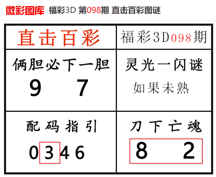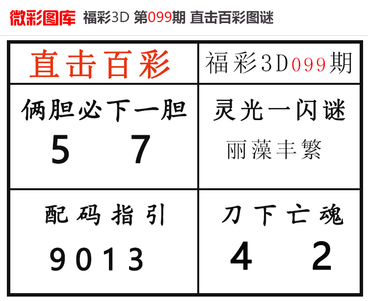 • 26099期:福彩3D【直击百彩】微彩图谜 上期配码红3、杀码红