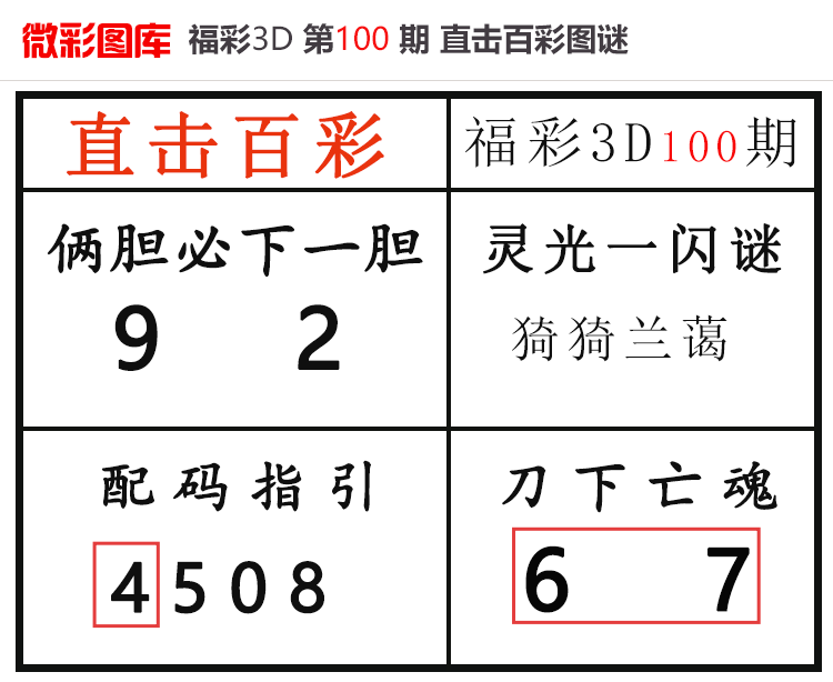 • 26100期:福彩3D【直击百彩】微彩图谜 上期胆码红7、杀码红