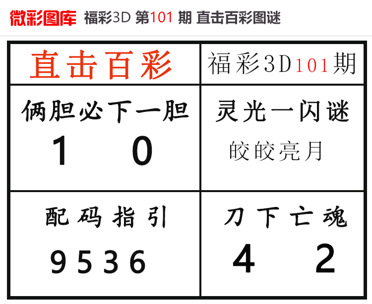• 26101期:福彩3D【直击百彩】微彩图谜 上期配码红4、杀码红