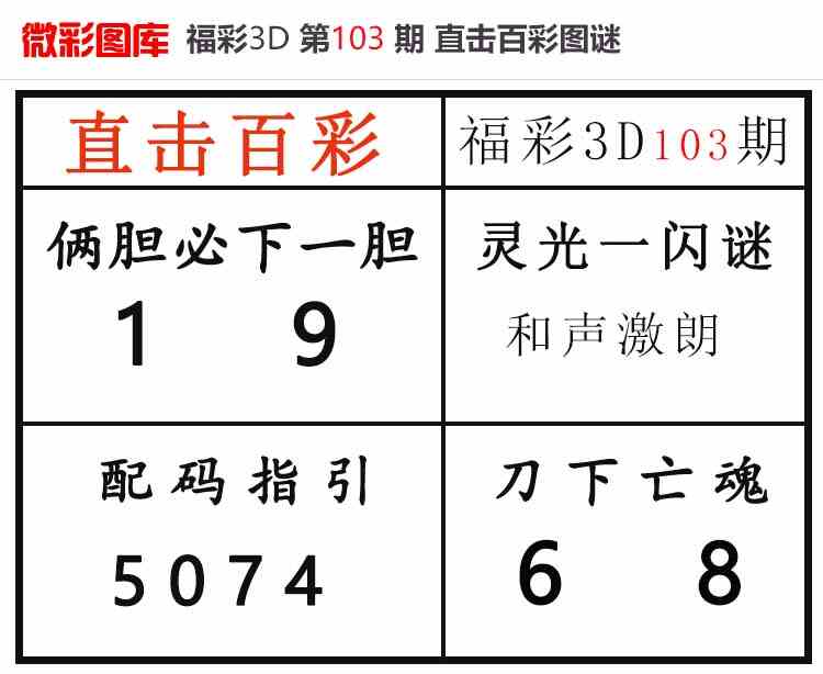 • 26103期:福彩3D【直击百彩】微彩图谜 上期配码红24、杀码红
