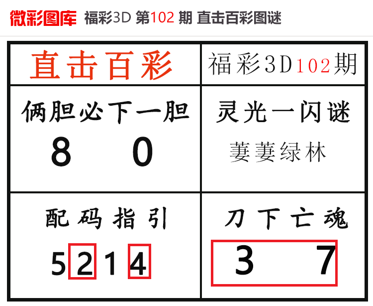 • 26102期:福彩3D【智多星吴用】图谜 上期胆码红84、杀码红