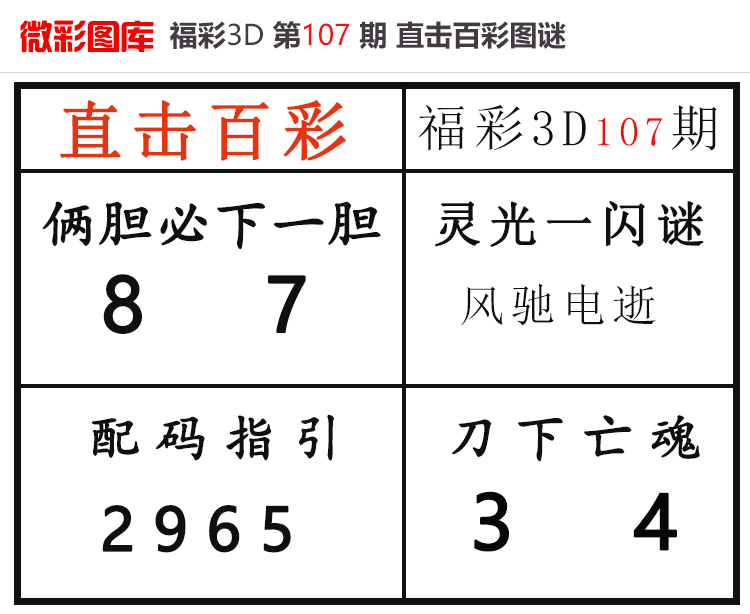 • 26107期:福彩3D【直击百彩】微彩图谜 上期胆码红2