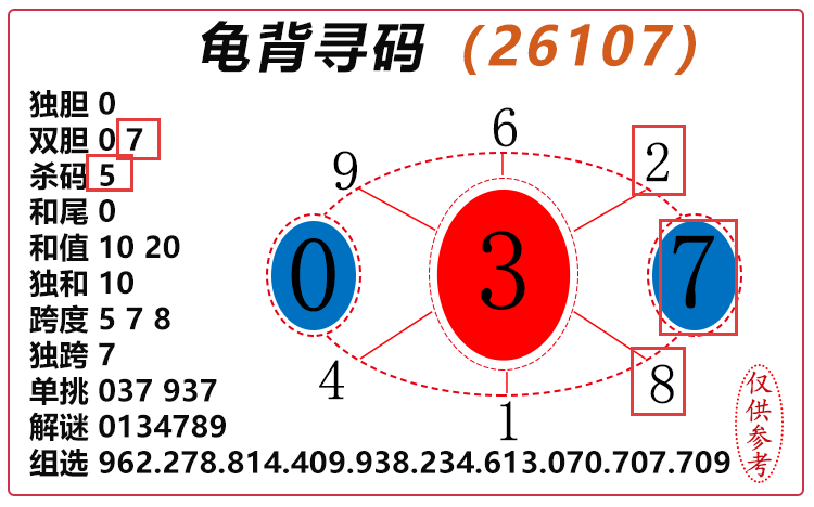 • 26108期:福彩3D【龟背寻码】精选图谜推荐 上期杀码红