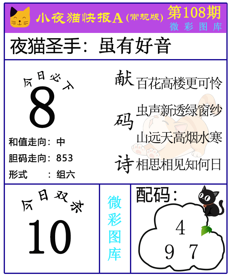 • 26108期:福彩3D【小野猫快报】精选版图库 上期配码红78