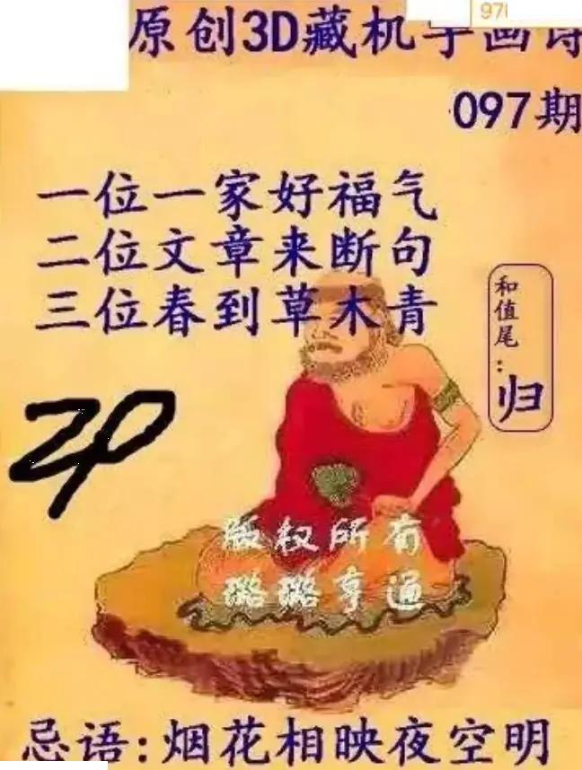 • 福彩3D26097期藏机图诗句 3D字谜汇总