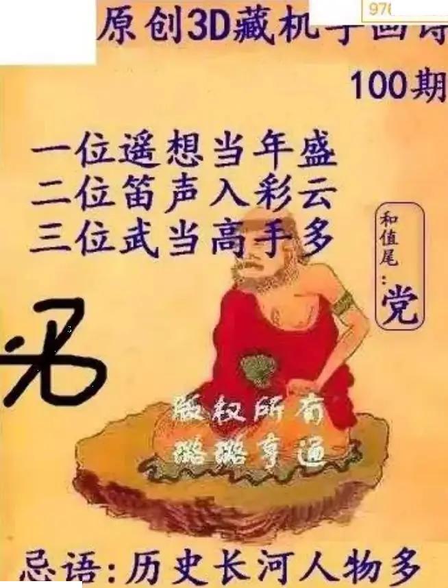 • 福彩3D26100期藏机图诗句 3D字谜汇总