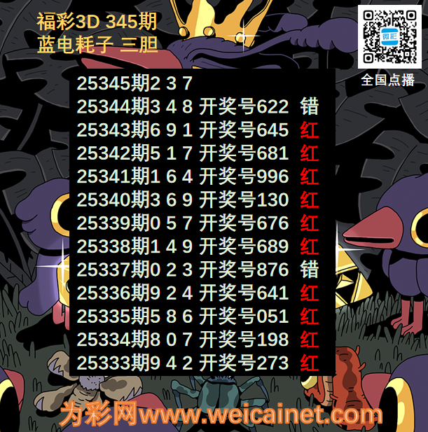 • 福彩3D26025期胆码 蓝电耗子三胆图