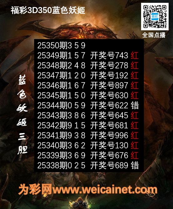 • 福彩3D26025期胆码 蓝色妖姬胆码图