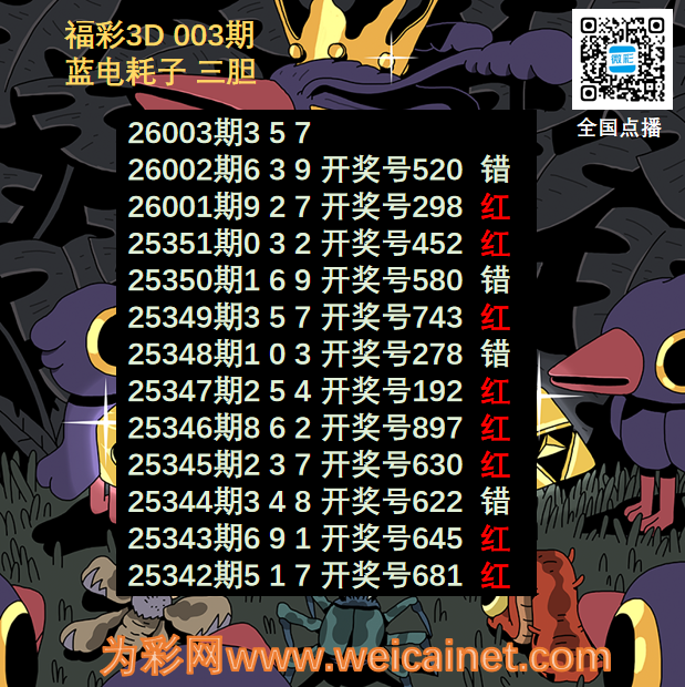 • 福彩3D26003期胆码 蓝电耗子三胆图
