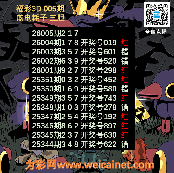• 福彩3D26005期胆码 蓝电耗子三胆图
