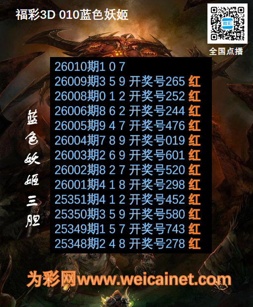 • 福彩3D26090期胆码 蓝色妖姬胆码图