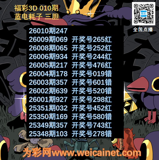 • 福彩3D26010期胆码 蓝色妖姬胆码图