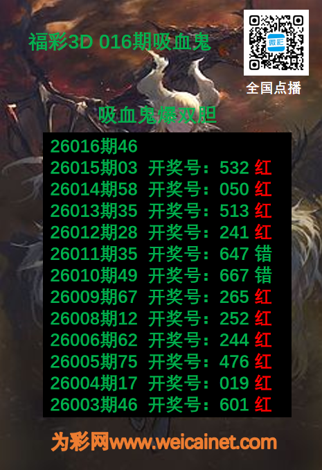 • 福彩3D26016期胆码 吸血鬼双胆图