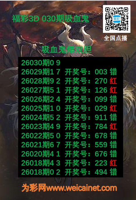 • 福彩3D26030期胆码 吸血鬼双胆图