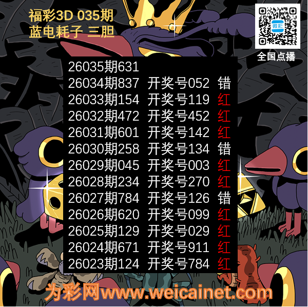• 福彩3D26035胆码 蓝电耗子三胆图
