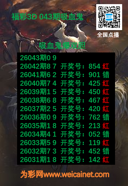 • 福彩3D26043期胆码 吸血鬼双胆图