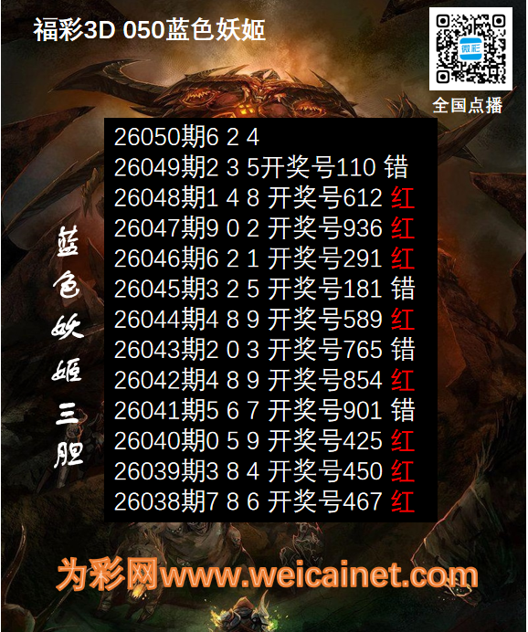 • 福彩3D26050期胆码 蓝色妖姬胆码图