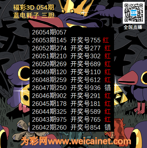 • 福彩3D26054期胆码 蓝电耗子三胆图