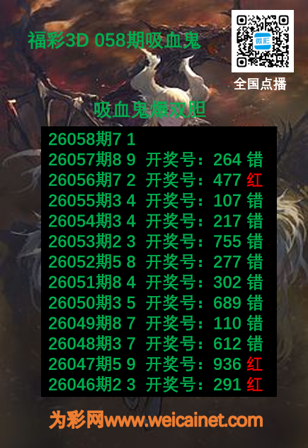 • 福彩3D26058期胆码 吸血鬼双胆图