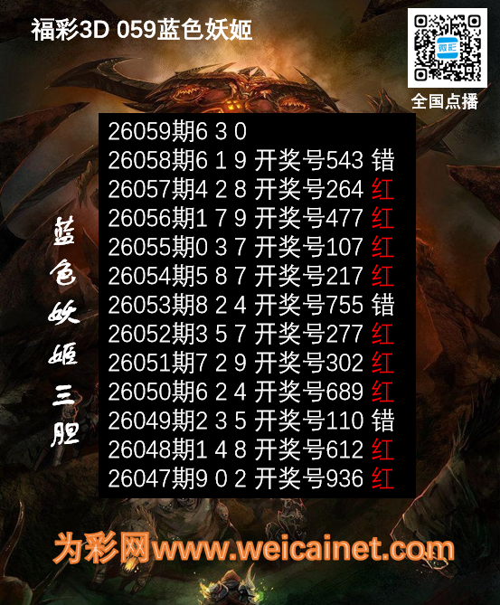 • 福彩3D26059期胆码 蓝色妖姬胆码图