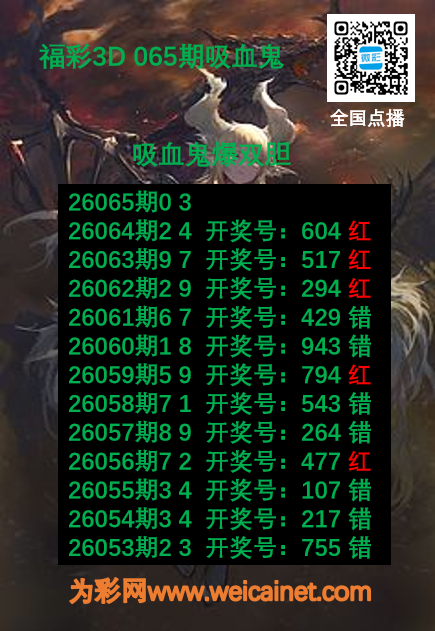 • 福彩3D26065期胆码 吸血鬼双胆图
