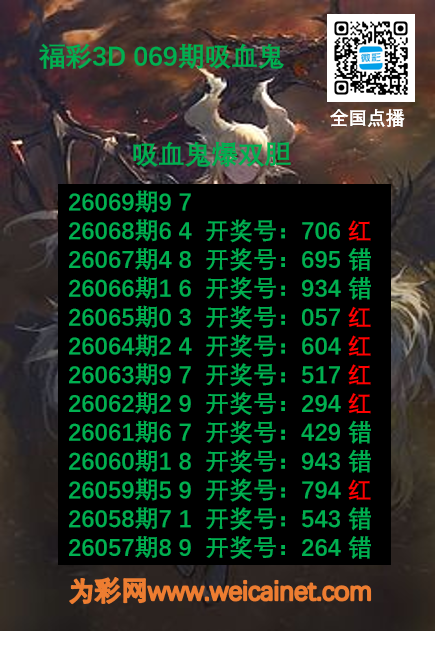 • 福彩3D26069期胆码 吸血鬼双胆图