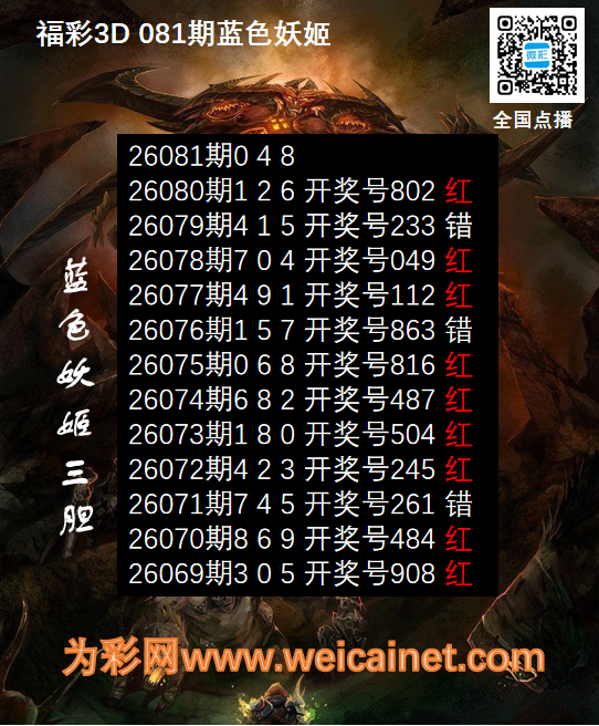 • 福彩3D26081期胆码 蓝色妖姬胆码图