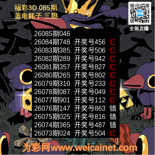 • 福彩3D26085期胆码 蓝电耗子三胆图