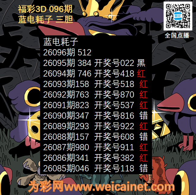 • 福彩3D26095期胆码 蓝电耗子三胆图