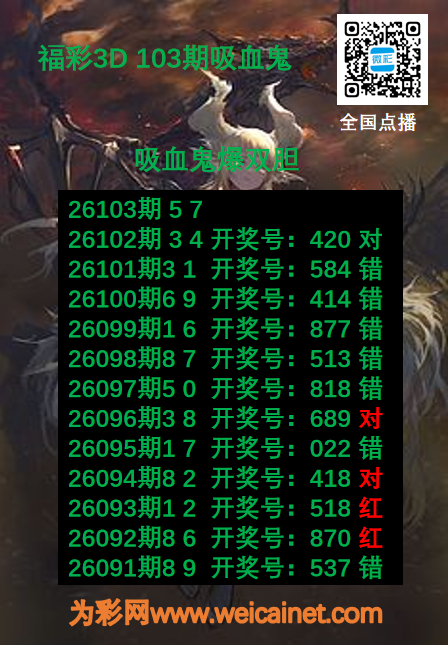• 福彩3D26103期胆码 吸血鬼双胆图