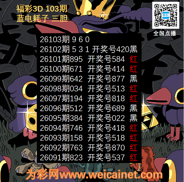 • 福彩3D26103期胆码 蓝电耗子三胆图
