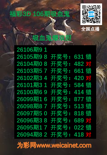 • 福彩3D26106期胆码 吸血鬼双胆图