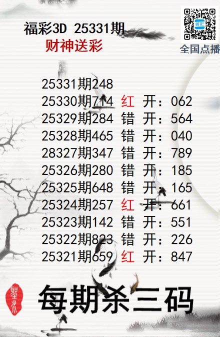 • 福彩3D25331期财神送彩杀三码