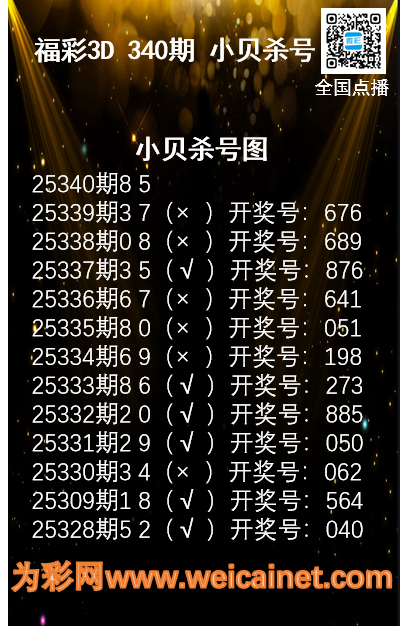 • 福彩3D25340期码师小贝杀号图精选
