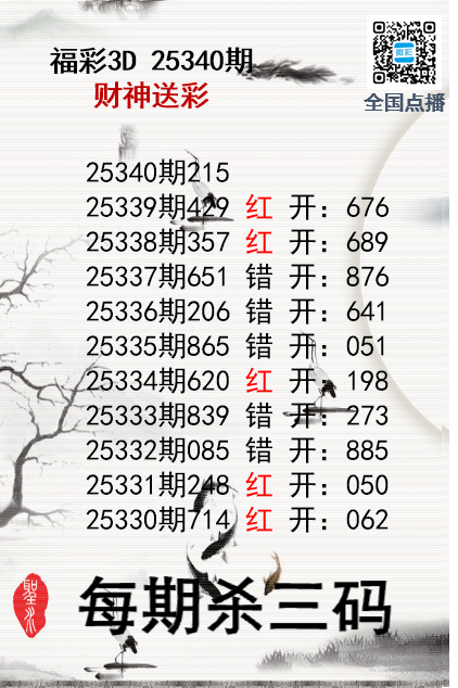• 福彩3D25340期财神送彩杀三码