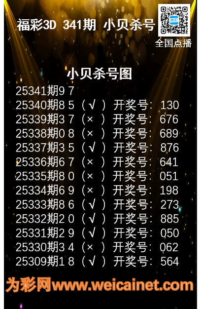 • 福彩3D25341期码师小贝杀号图精选